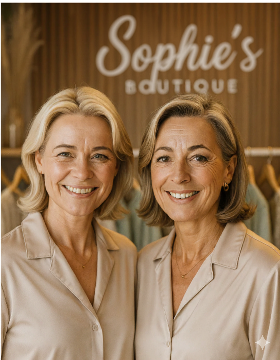For over 26 years, we’ve poured our hearts into Sophie’s Boutique — creating more than just a store, but a space where elegance, comfort, and authenticity harmonize. Born from the close bond between two sisters, Sophie’s has always been about timeless fashion and the women who wear it with grace.